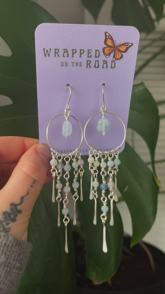 Aquamarine Silver Waterfall Hoops