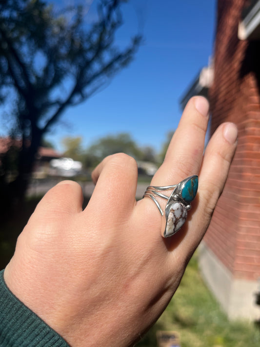Egyptian Turquoise & Whitehorse Triple Band Ring Sz 8.25