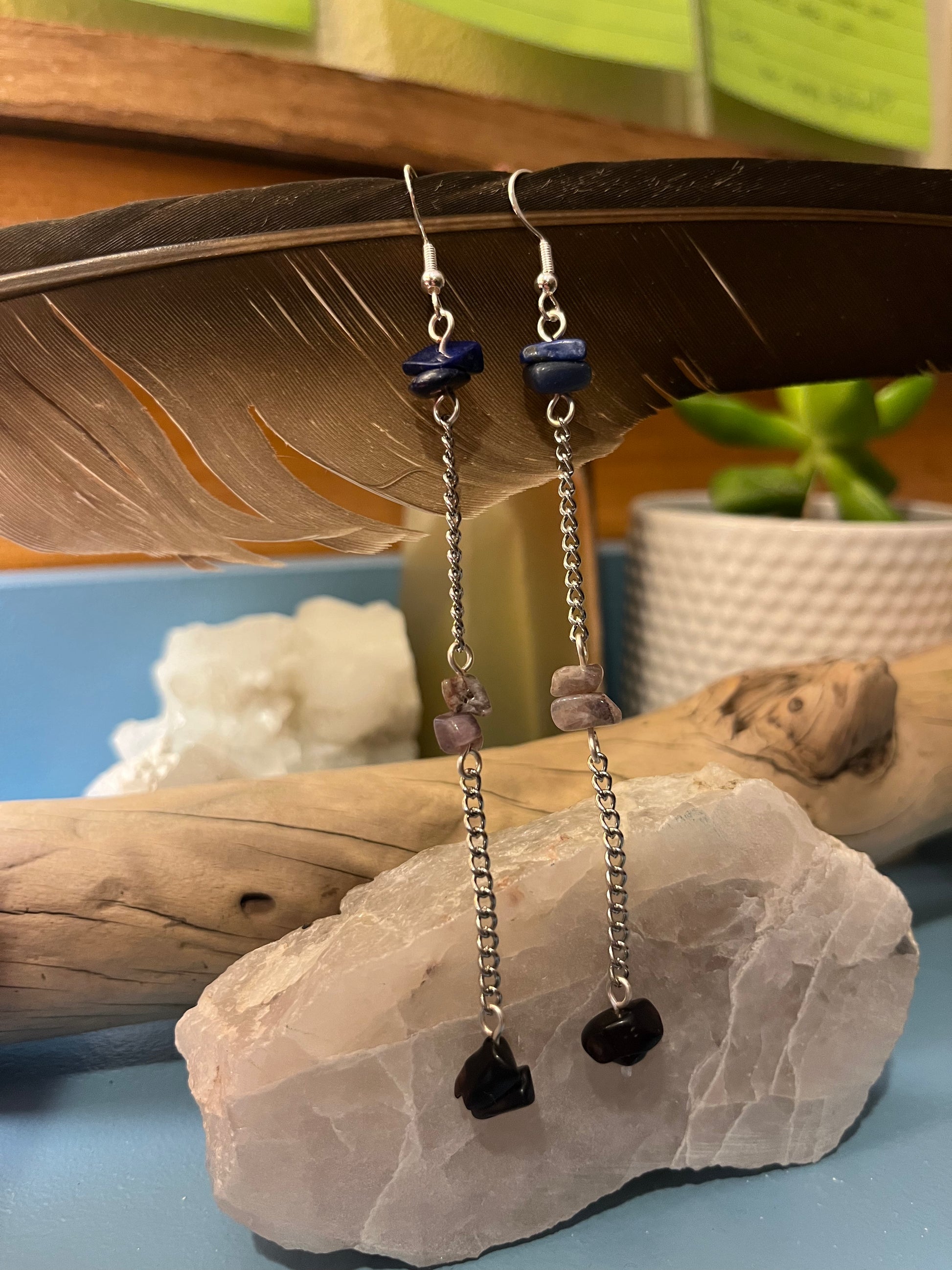 Elegant Dangles w/ Lapis, Purple Lace Agate, and Obsidian